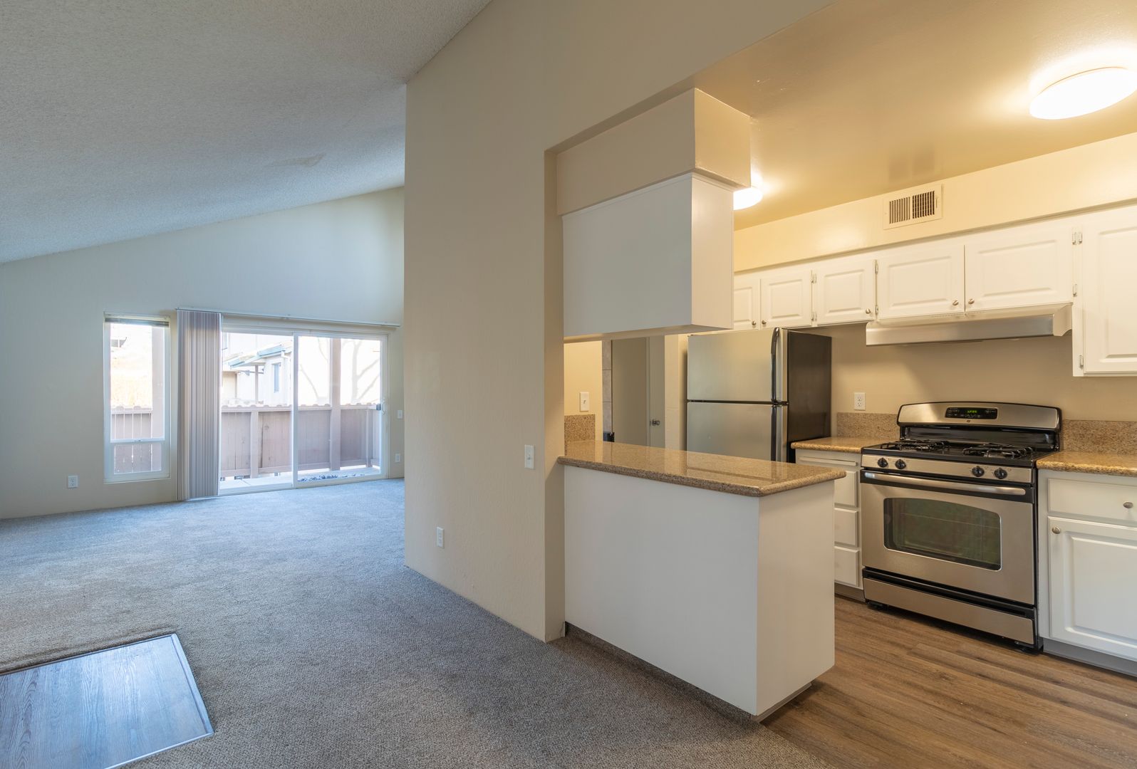 This 2-bedroom, 1-bath apartment offers 1048 sq ft of comfort and convenience. Your bright and airy unit features vaulted ceilings, walk-in closets, ceiling fans, stainless steel appliances, hardwood floors, upgraded kitchen/bathroom, granite countertops and central heating and air. Kick back and relax by our pool, take your furry friend for a walk around the complex or along the river, and enjoy access to our on-site laundry! Don’t miss the opportunity to make this lovely apartment your new home.